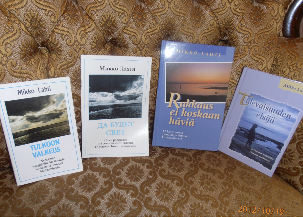 -Tulkoon valkeus ilm. v.1996. Seitsemän kertomusta Jumalan ja ihmisen kohtaamisesta Suomessa ja Venäjällä .Julkaistu venäjäksi v.2000.